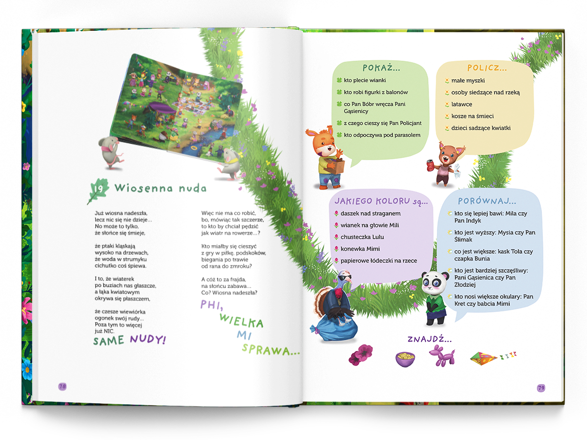 "Wiosna w Dolinie Tumilu" to dwie książki, które stanowią całość. Duża kartonowa Wyszukiwanka i 90-stronicowa Czytanka z historiami i zadaniami aktywizującymi. To jedyna taka pozycja na polskim rynku wydawniczym.