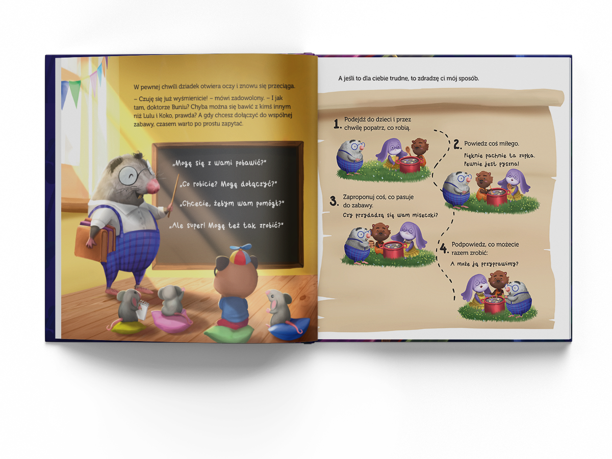 👉 Uczy, jak dołączyć do zabawy – podaje konkretne, proste sposoby, jak "zaprosić się" do grupy. :)