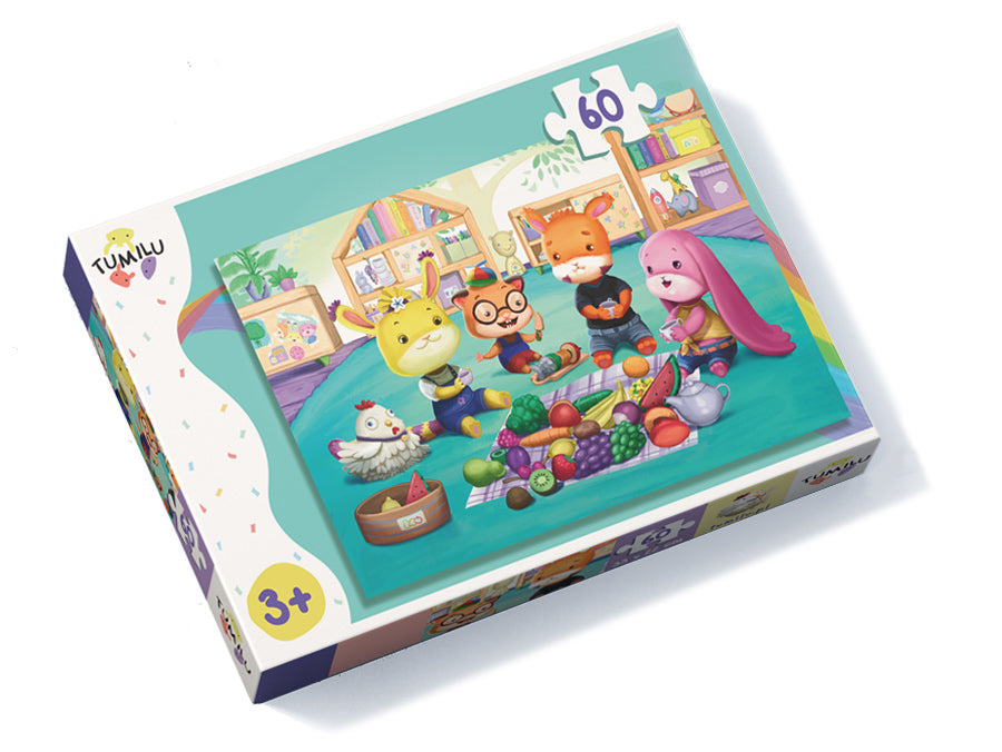 Puzzle 30-elementowe o wymiarach 27x20 cm. Puzzle 60-elementowe o wymiarach 33x22 cm. Każde pakowane w poręczne pudełko o wymiarach 14,5x21cm.